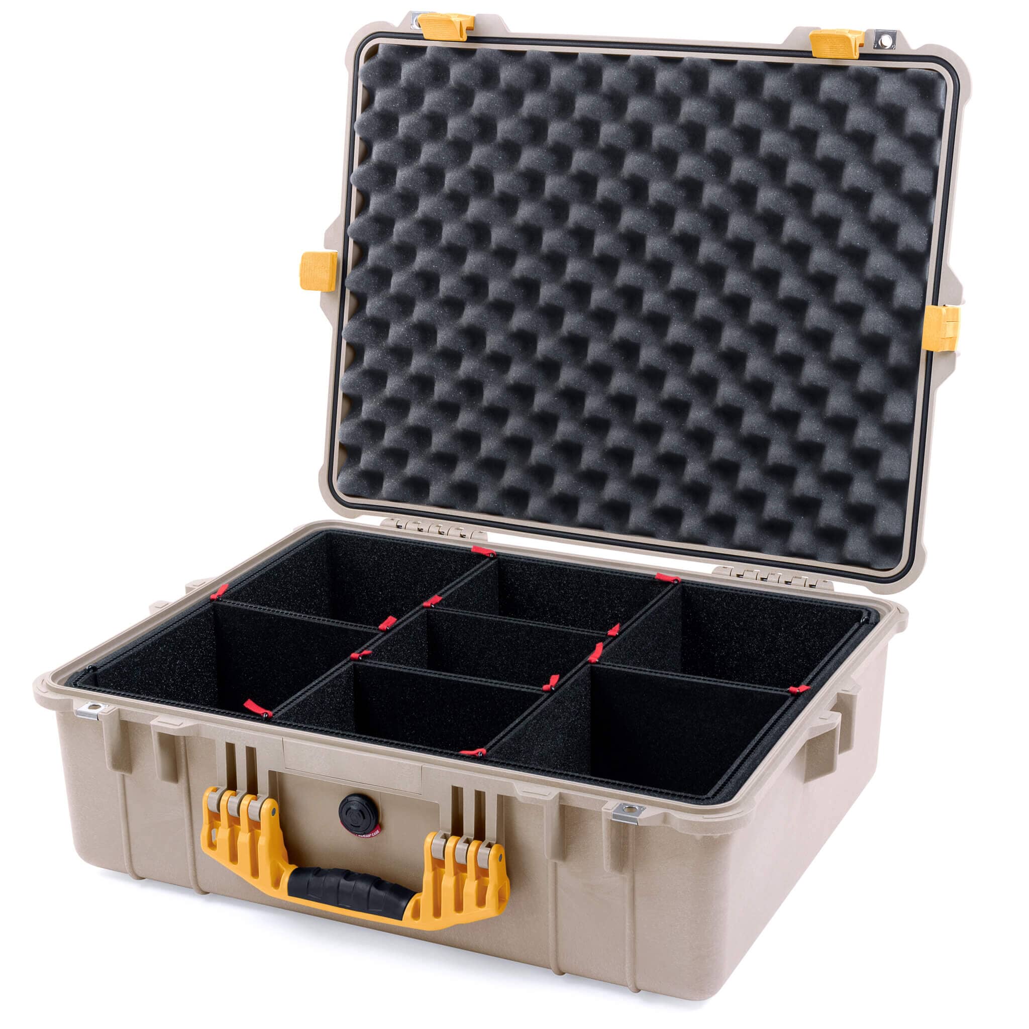Pelican 1600 Case, Desert Tan with Yellow Handle & Latches