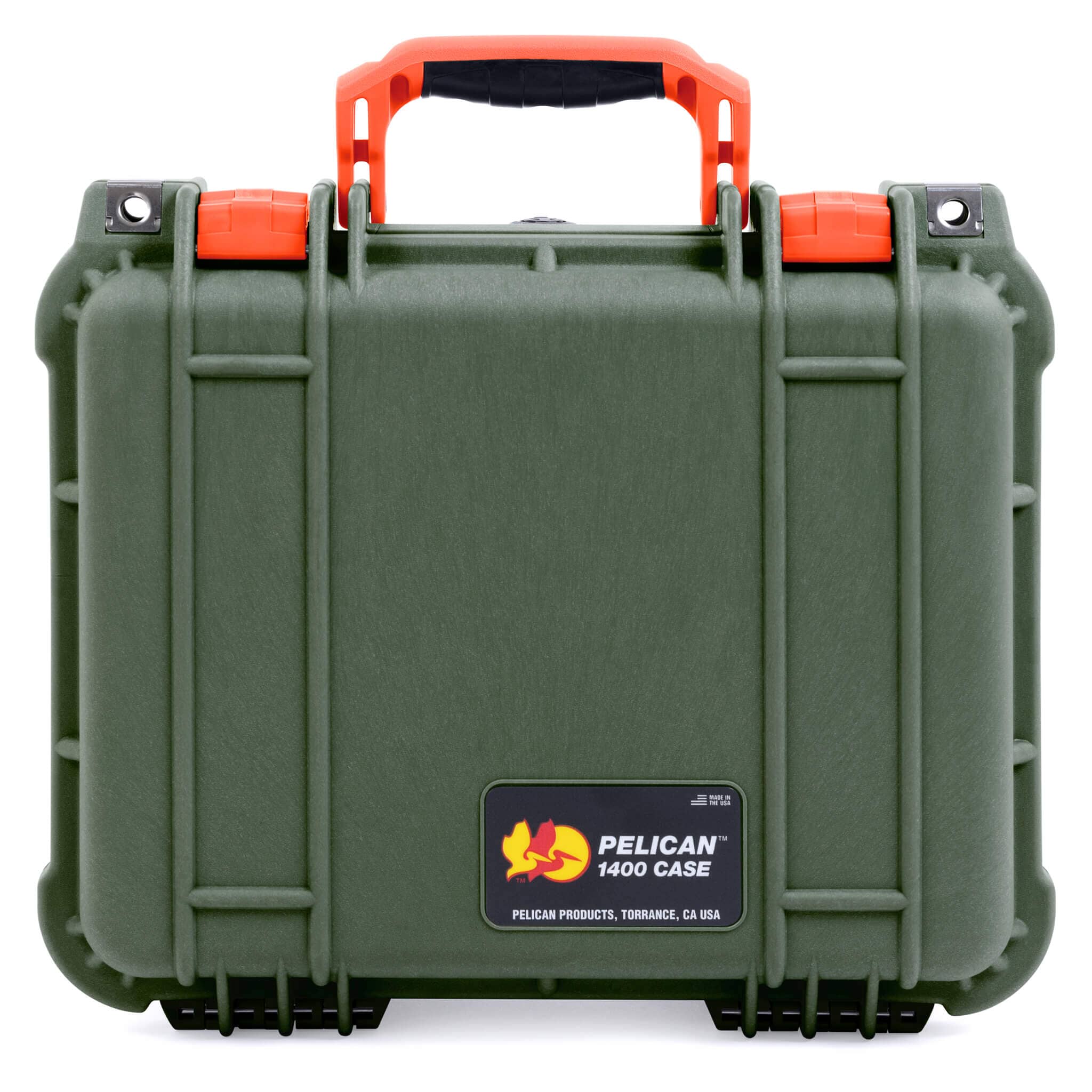 Pelican 1400 Case, OD Green with Orange Handle & Latches