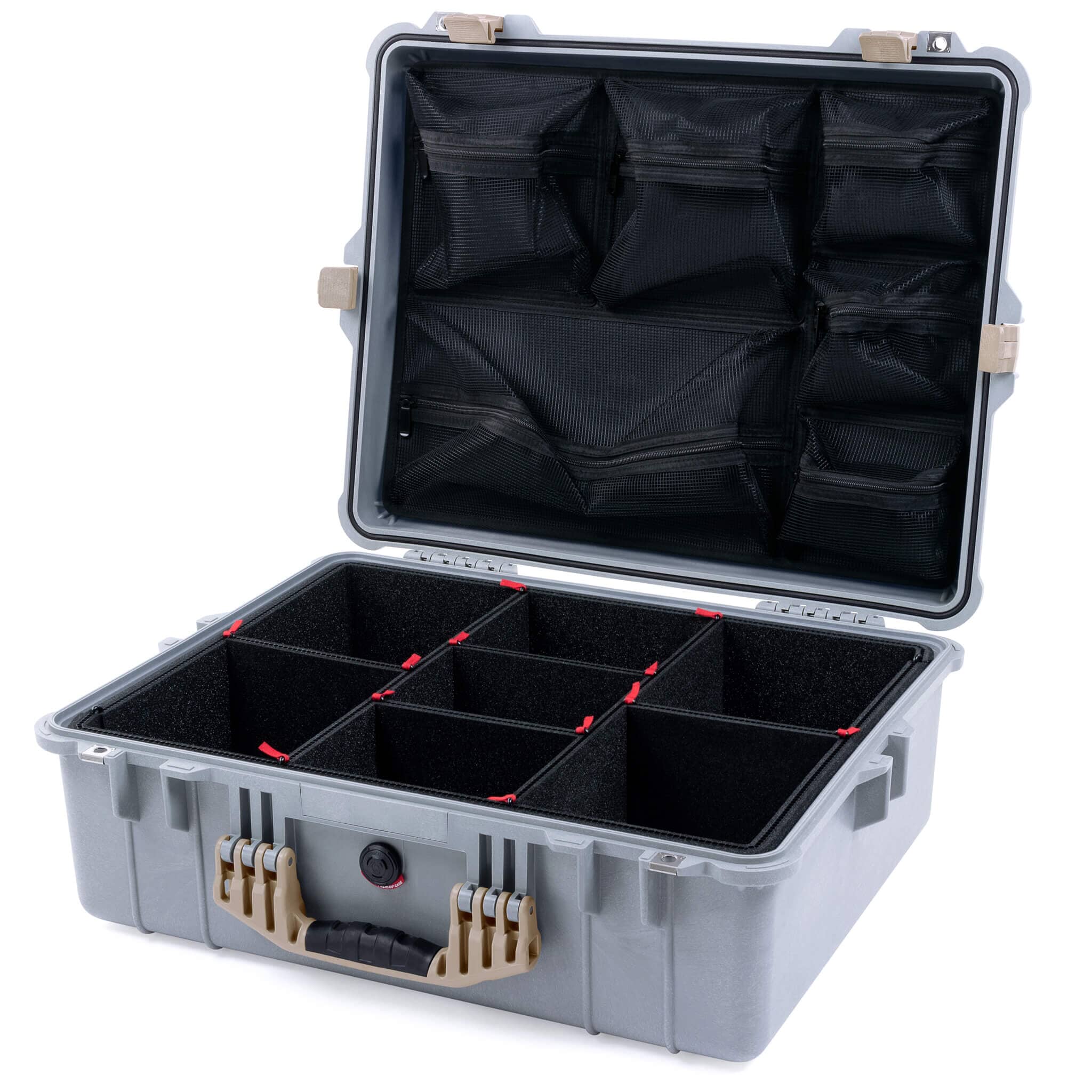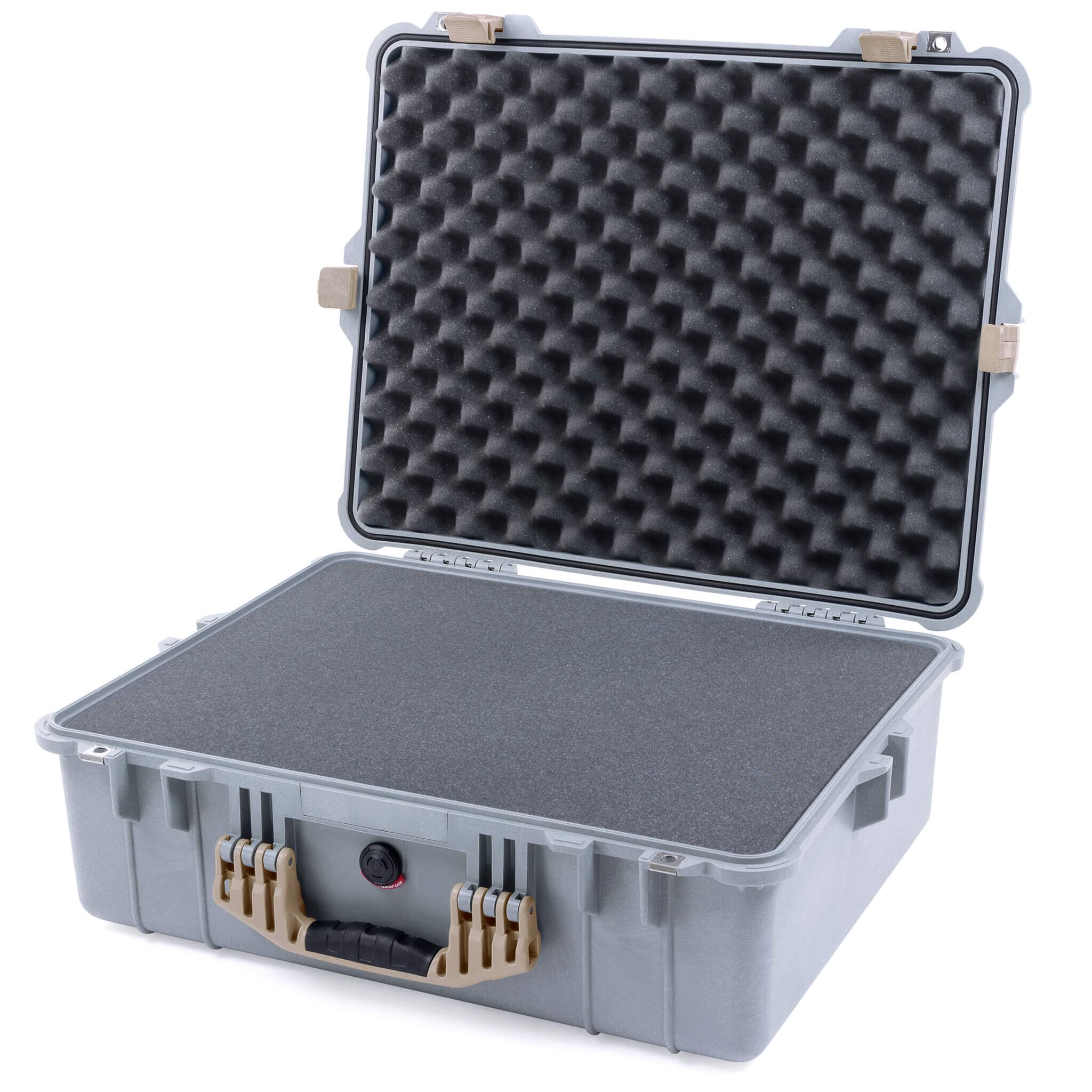 Pelican 1600 Case, Silver with Desert Tan Handle & Latches
